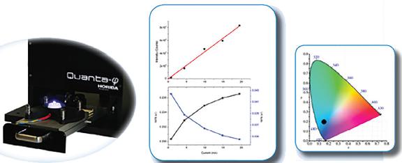 Where Eb is the integrated luminescence from the sample caused by indirect luminescence from the sphere and A is the absorbance of the sample at the excitation wavelength. A simple calculator that incorporates the two traces along with appropriate spectral correction factors is used to give the PLQY and associated error analysis.