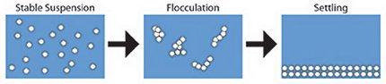 Suspended solids are a common impurity in wastewater from industrial and mining operations. Safety and aesthetics dictate that all water be essentially free of suspended matter. In order to meet requirements for water clarity for reuse or discharge, the suspended solids are often allowed to settle to the bottom or float (cream) to the top of large tanks. The duration of these processes is a strong function of the particle size, e.g. larger particles settle/cream faster. Thus, if particles can be made to aggregate, the settling process is shorter and therefore the treatment operation is faster and therefore less expensive.