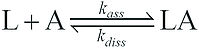 SPR kinetics data (interactions) can be modeled simply in order to evaluate the affinity between 2 molecules. The model generally used assumes that the reactions involve one ligand (L) and one analyte (A) which interact with a 1:1 stoichiometry:
