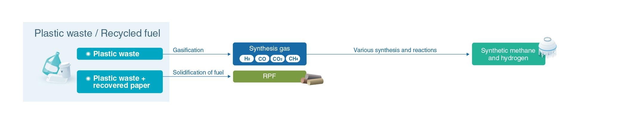 Effective use of recycled plastic is achieved through material recycling, which recycles plastic waste into raw materials for plastic products; chemical recycling, which produces raw materials for chemicals and steelmaking and hydrogen and synthetic fuels; and thermal recovery, which burns plastic waste unsuitable for the material/chemical cycle and recovers it as energy (see table below).